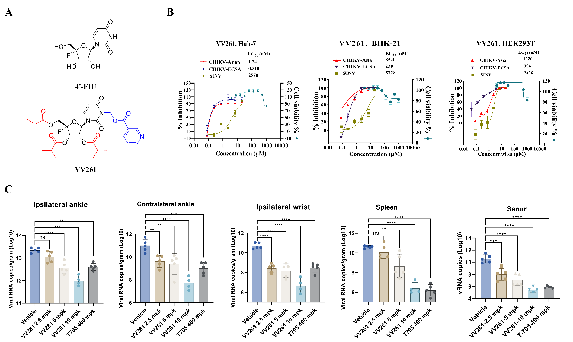 Oral nucleoside analog VV261 showed significant anti-CHIKV efficacy both in vitro and in vivo.